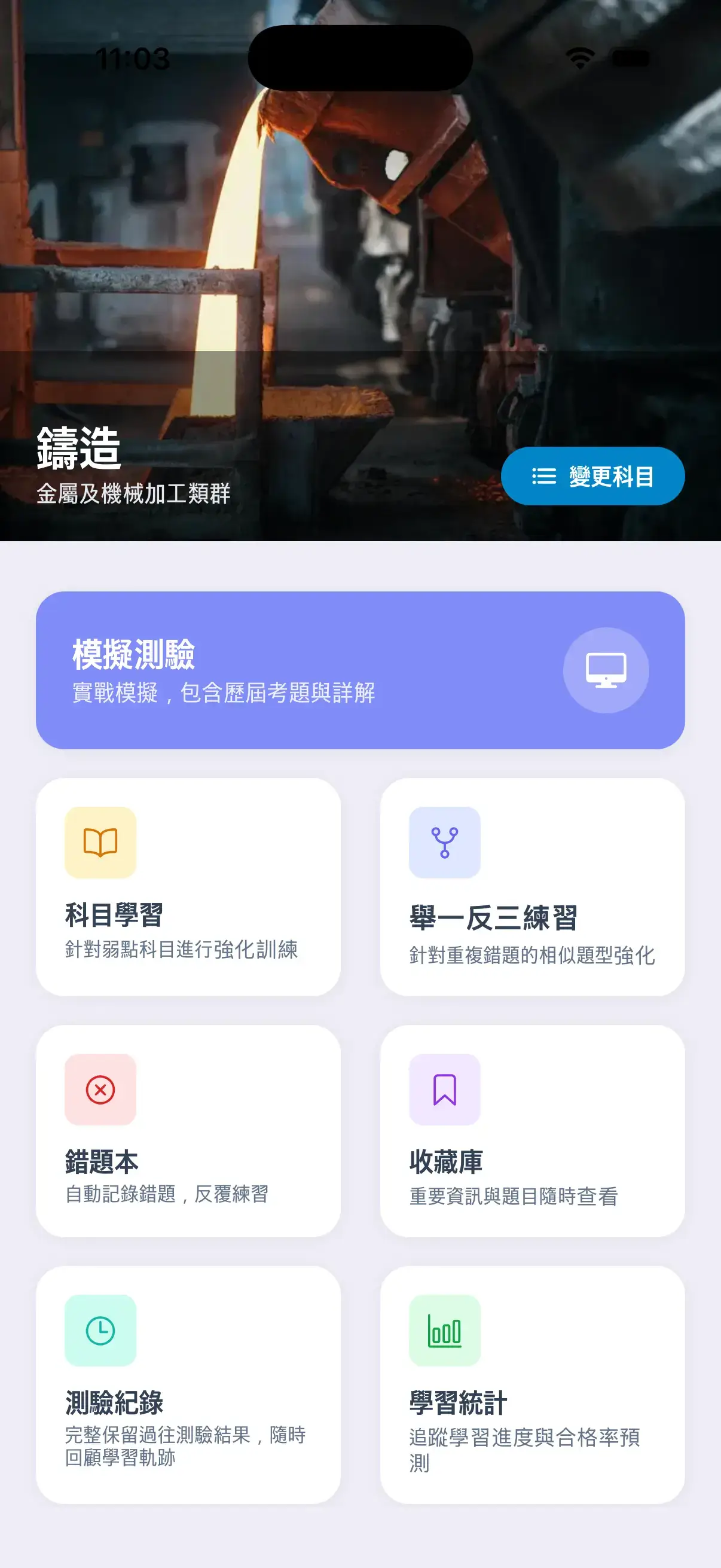收錄涵蓋各科目的完整題庫,題目持續更新擴充。無論是通勤搭車、等餐空檔,還是睡前 10 分鐘,只要打開手機,零碎時間都能化為得分關鍵。