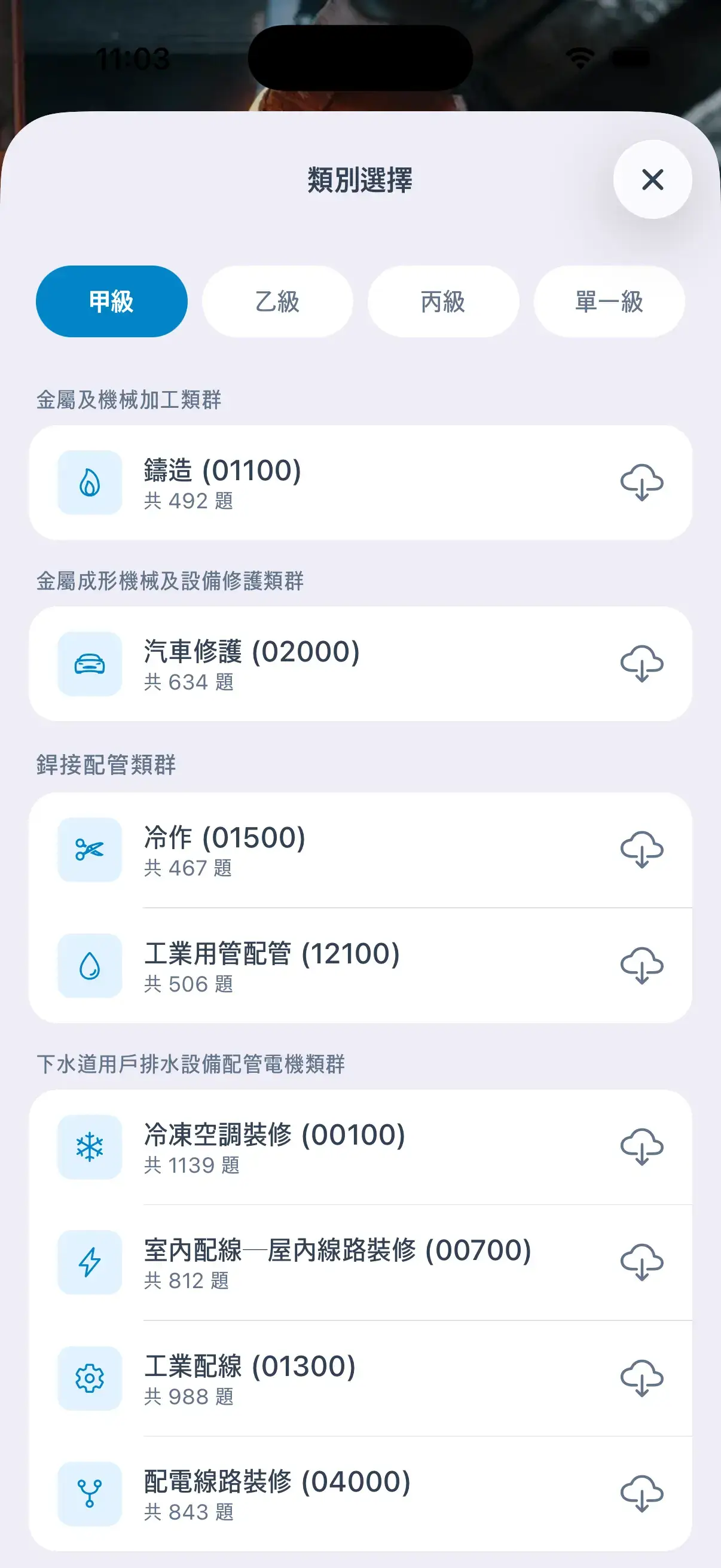 目前涵蓋勞動部技術士技能檢定多項職類,持續擴充中。請至 APP 內查看最新科目列表。